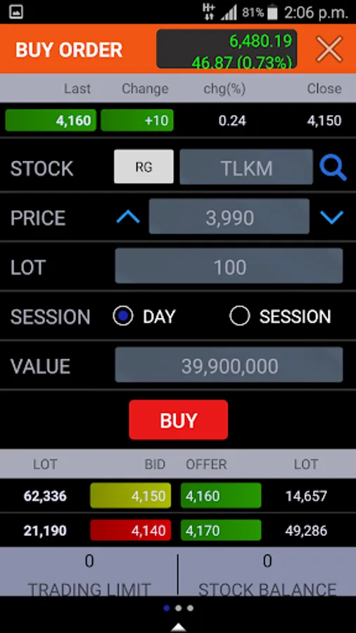 Market Info and Trading Feature are available