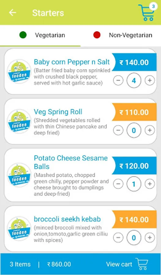 You can order items from our multi-cuisine restaurant or from the our authentic southern delicacies. You can also order from our barbeque and dhaba specialties.