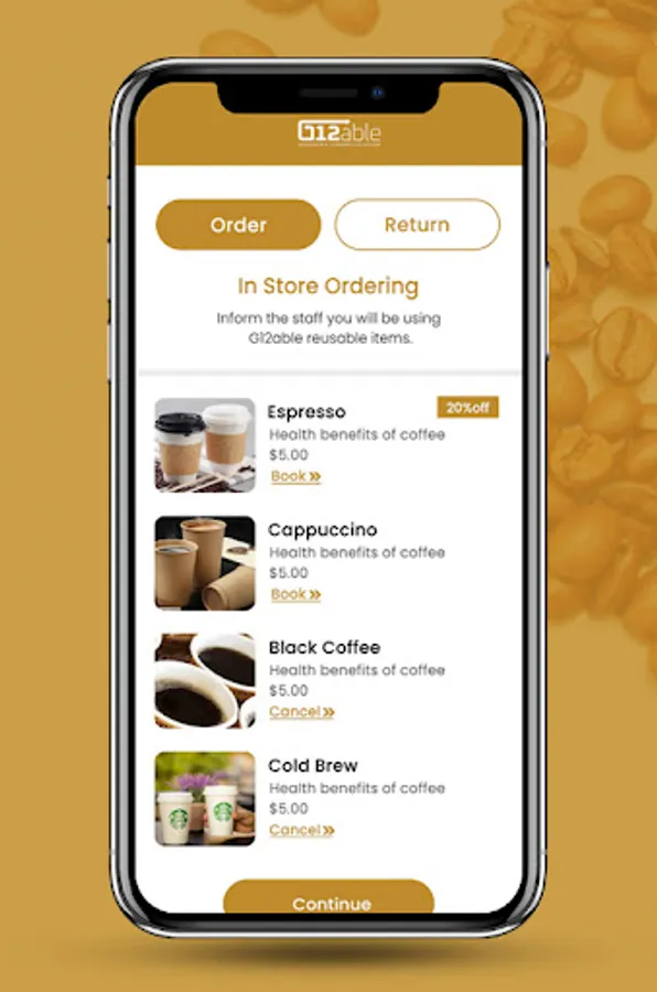 Download the G12able app today and subscribe to our program, with G12able app you can build your profile on the app, and measure your environmental footprint on your everyday visit to one of the coffee shops and Restaurants partners.