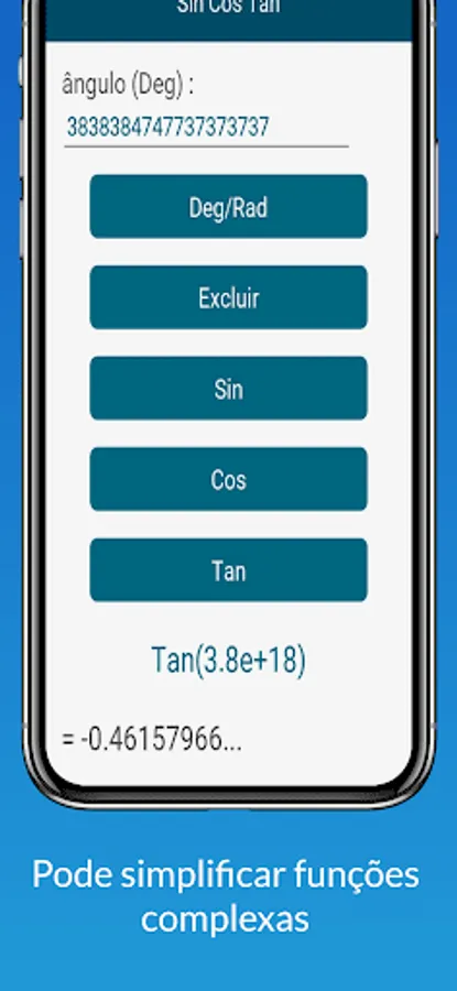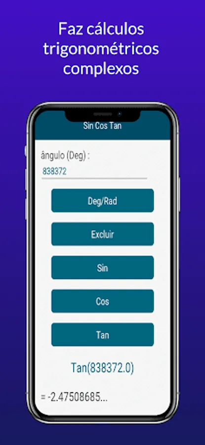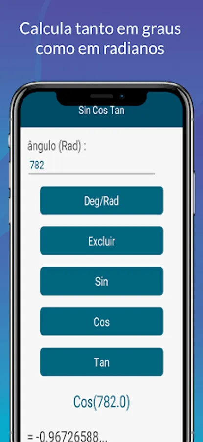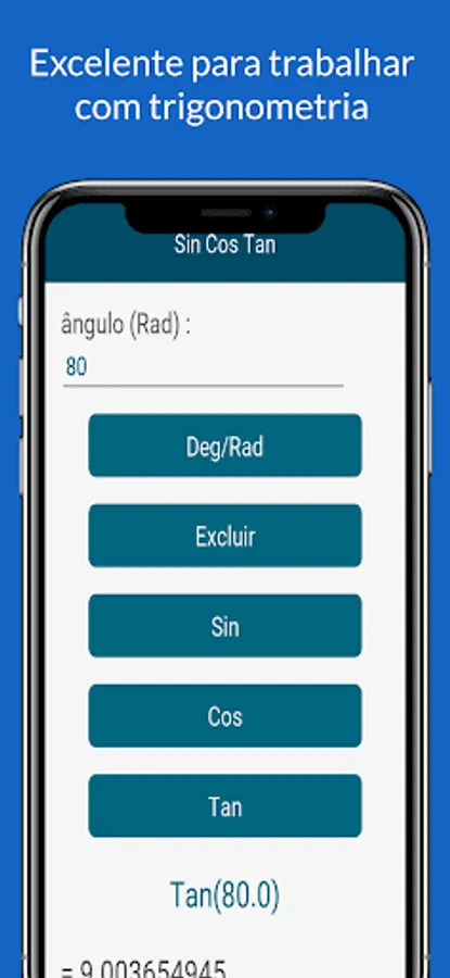 The app "Calculadora Sin Cos Tan" is a perfect application for calculating trigonometric functions, the application has several features for trigonometric calculation, which is very useful for all areas of knowledge of exact sciences, especially engineering.