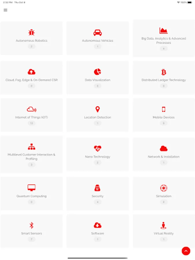 The categories offered by our sellers/vendors are: 3D Printing | Advanced Human-Machine Interfaces | Artificial Intelligence | Augmented Reality/Wearables | Authentication & Fraud Detection | Automation | Autonomous Robotics | Autonomous Vehicles | Big Data, Analytics & Advanced Processes | Cloud, Fog, Edge & On-Demand CSR | Data Visualization | Distributed Ledger Technology | Internet of Things (iOT) | Location Detection | Mobile Devices | Multilevel Customer Interaction & Profiling | Nano Technology | Network & Installation | Quantum Computing | Security | Simulation | Smart Sensors | Software | Virtual Reality