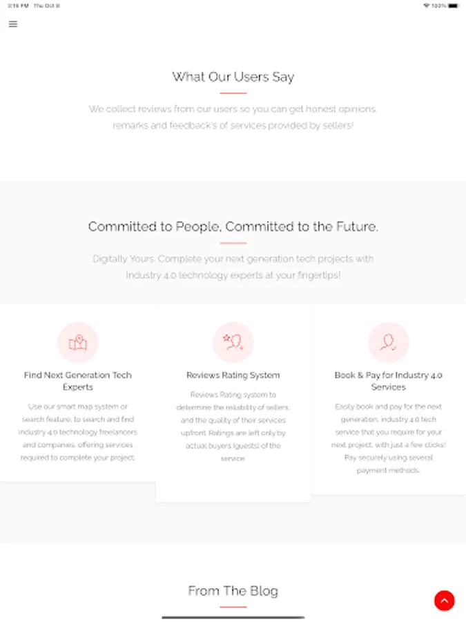We are the only platform on the internet currently offering our value proposition – industry 4.0 technology services from tech experts. Offering Trust and Reliability in the marketplace of technology services is our main agenda.