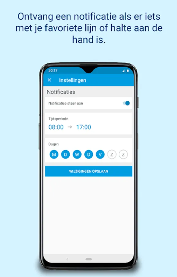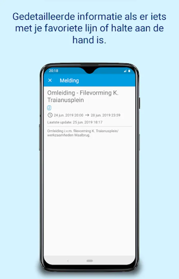 You can set stops or bus lines as favorites in the App. You can indicate per bus line whether you want to receive a notification for current travel information (about detours and blockages, for example). You can set this per line, per day and per time slot.
