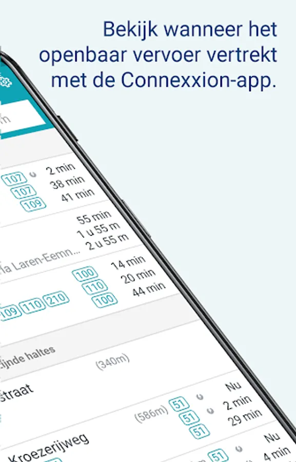 With the Connexxion OV App you have current departure times at hand. Using your GPS location, the app determines which stops are close to you. You can immediately see if your ride is leaving on time.