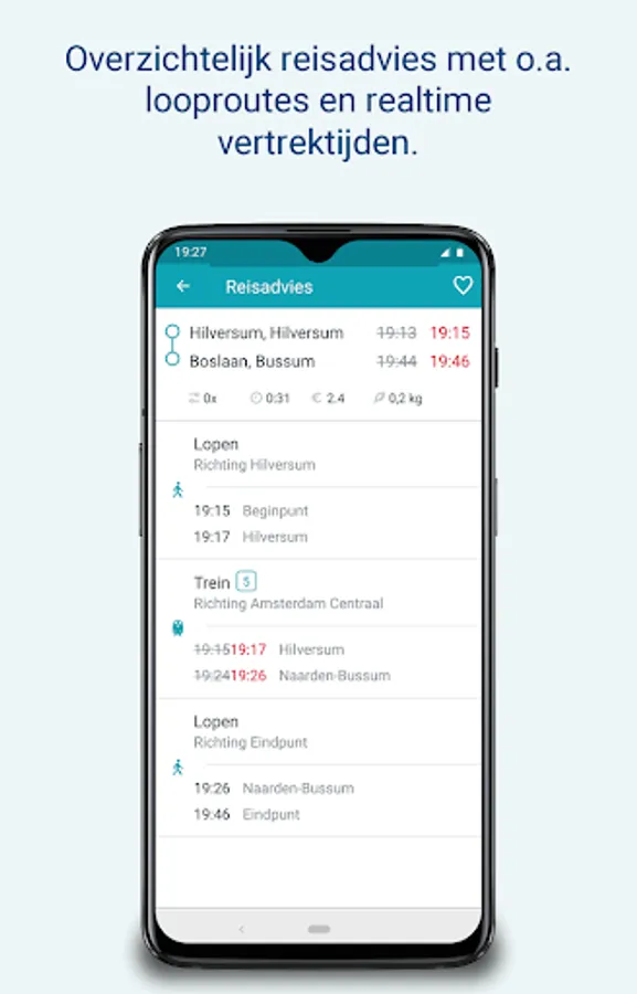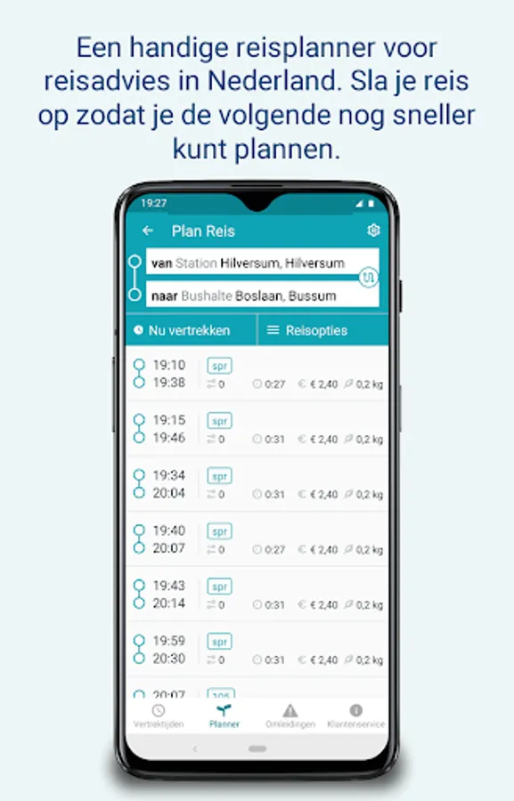 With the travel planner you can request travel advice from your current location or your chosen address to every travel destination in the Netherlands. For bus, tram, metro, train, ferry and walking.