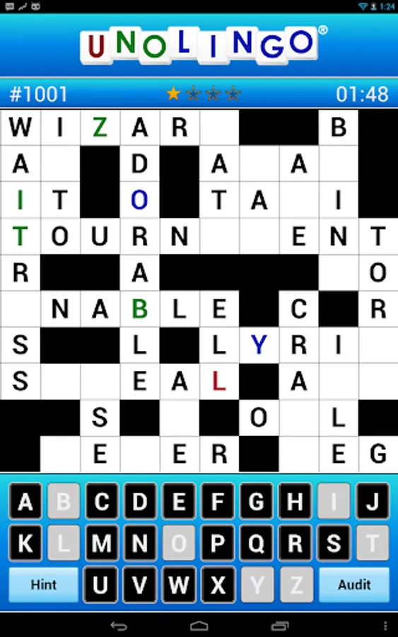 Select from your choice of four difficulty levels and use your word knowledge, reasoning, and deduction skills to complete the puzzle.