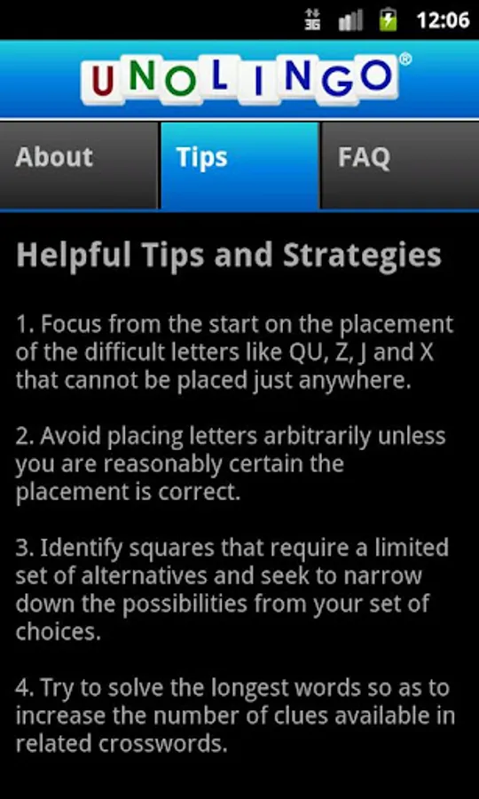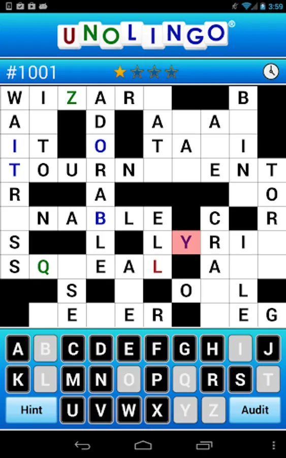Every Unolingo puzzle is a 10 x 10 crossword containing 26 empty squares that require the precise placement of each letter in the alphabet.