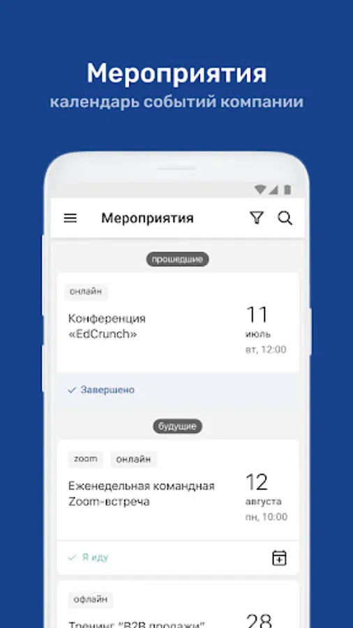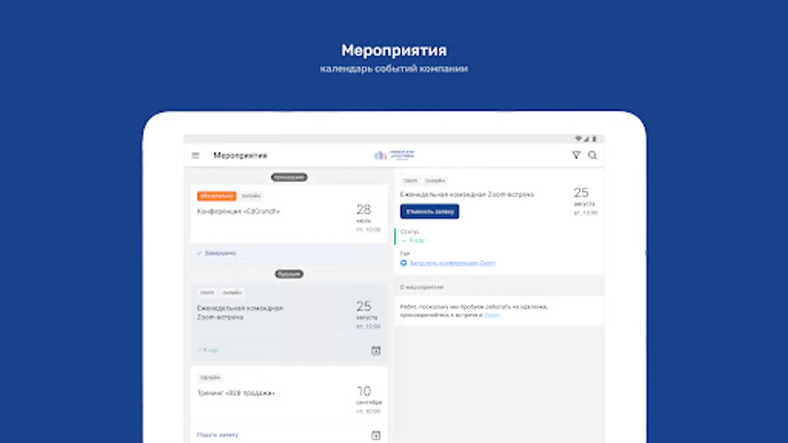⁃ Calendar of corporate events with the possibility to apply for participation