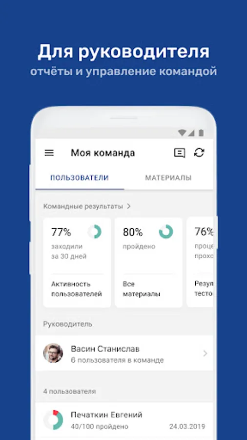 ⁃ Are you a leader? Post and discuss team news directly from the app, give out rewards and check learning progress