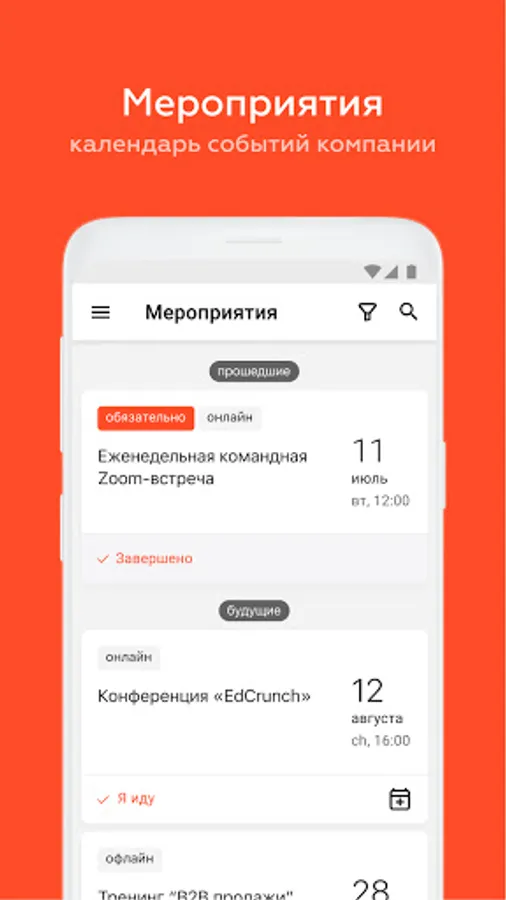 ⁃ Calendar of corporate events with the ability to apply for participation