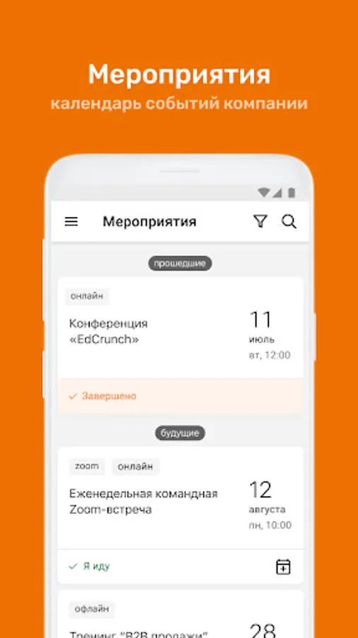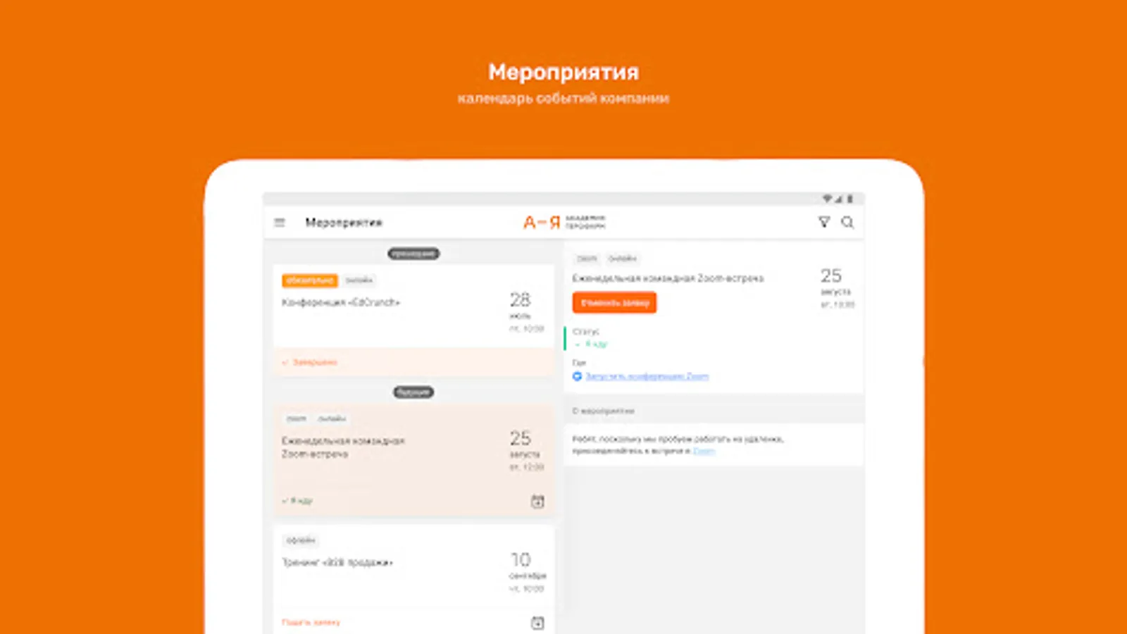 ⁃ Calendar of corporate events with the possibility to apply for participation