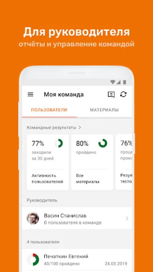 ⁃ Are you a leader? Post and discuss team news directly from the app, give out rewards and check learning progress