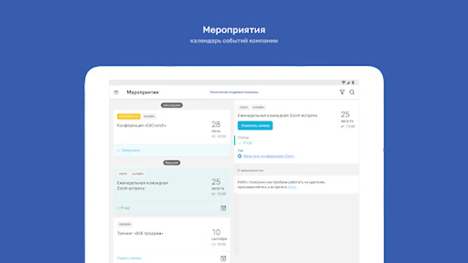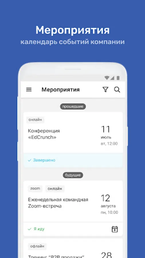 ⁃ Calendar of corporate events with the ability to apply for participation