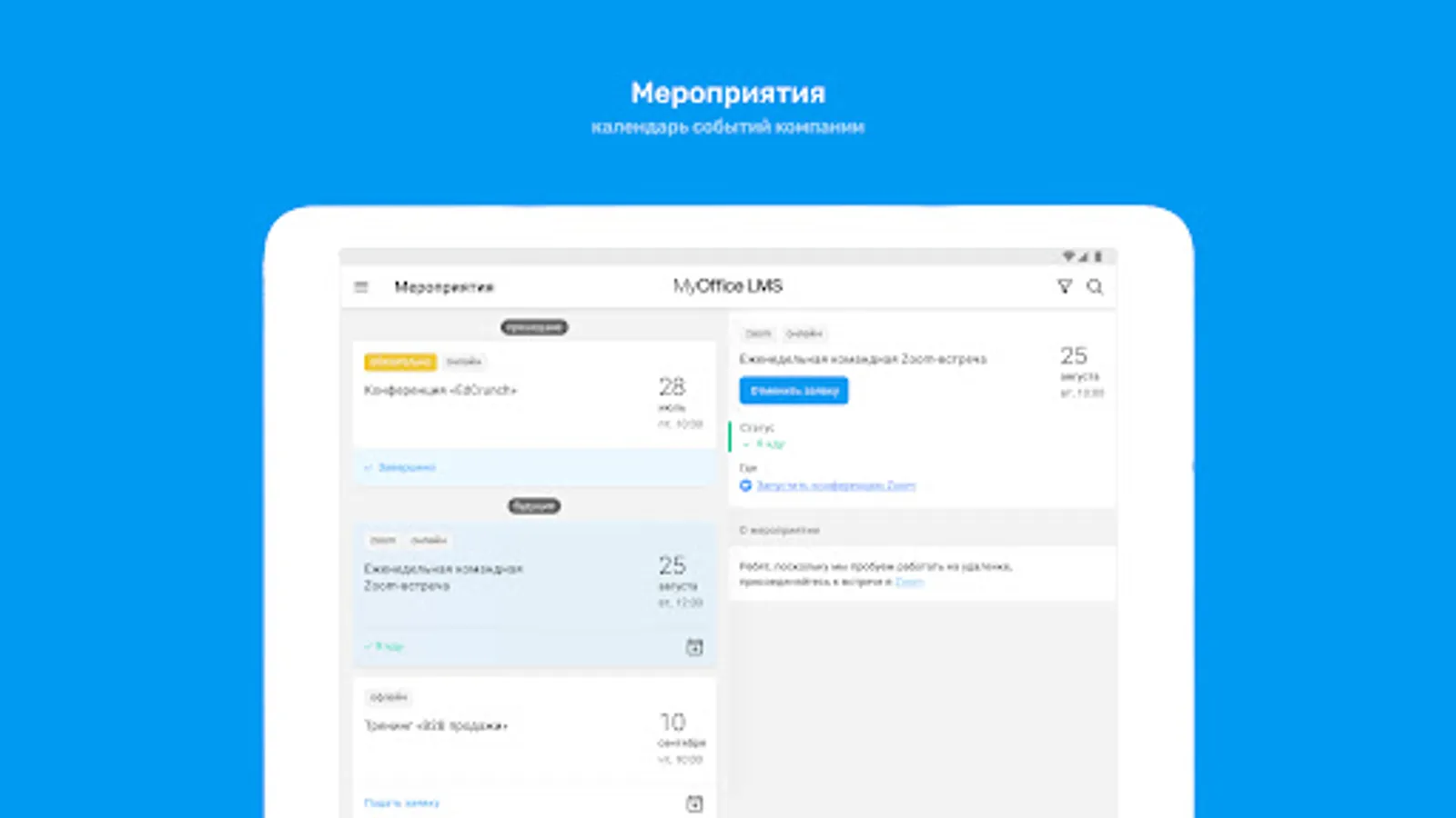 Through this application, you will get access to a personal account for training and development of MyOffice employees and partners.