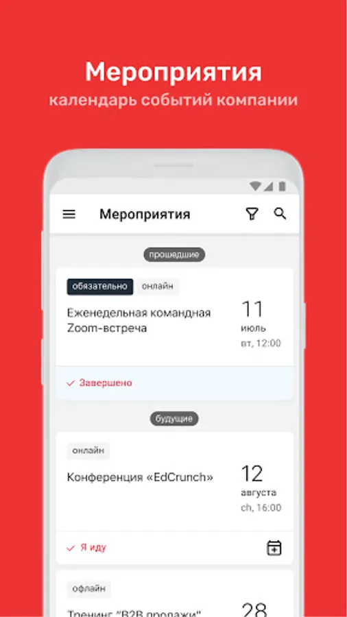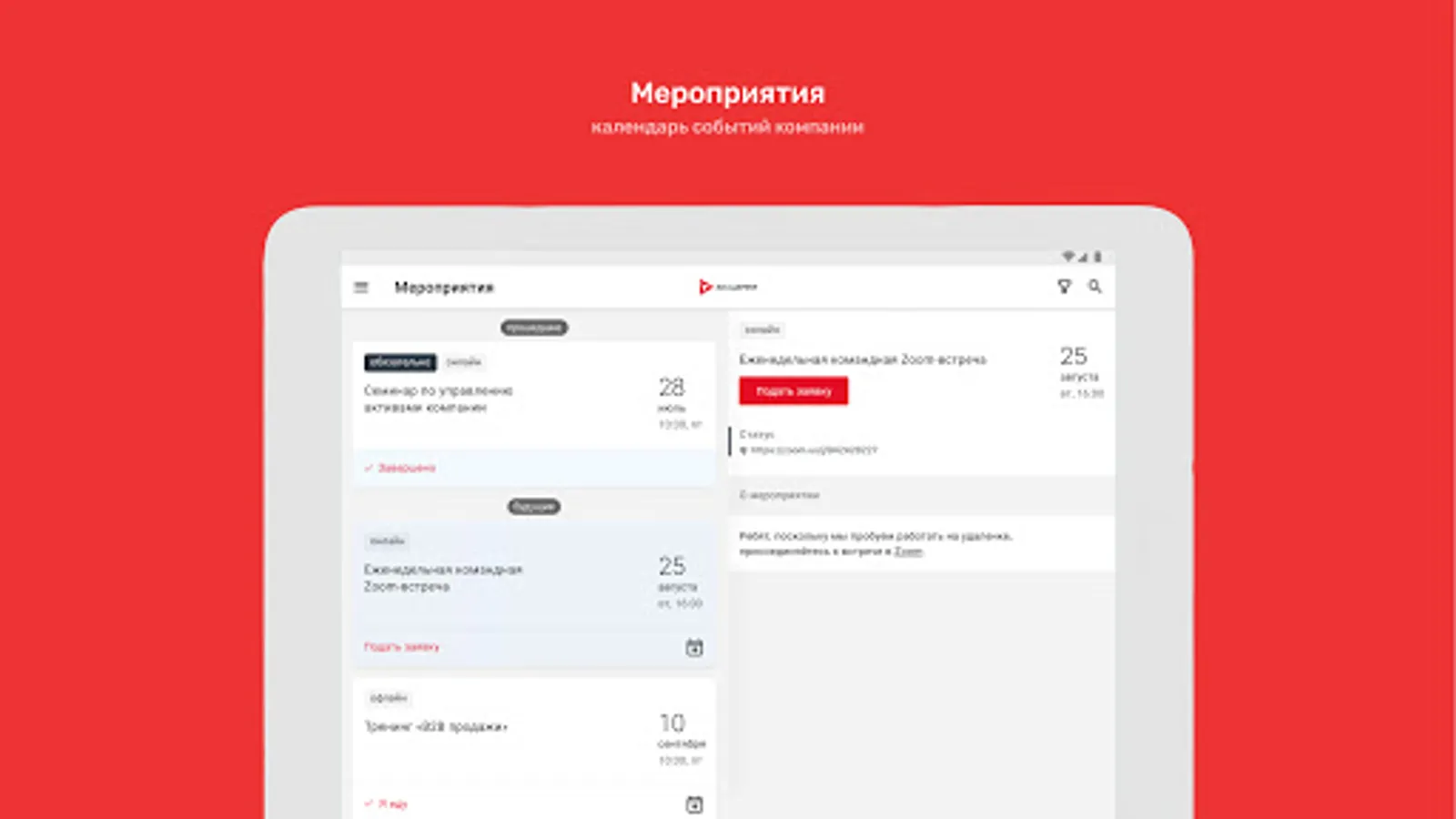 ⁃ Calendar of corporate events with the ability to apply for participation