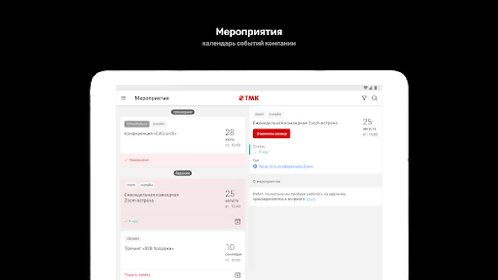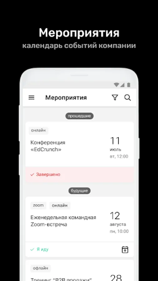 ⁃ Calendar of corporate events with the ability to apply for participation