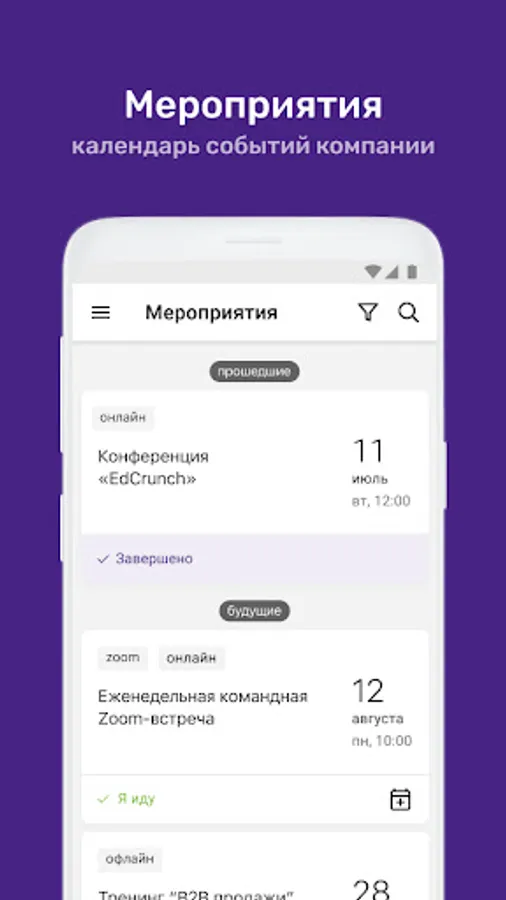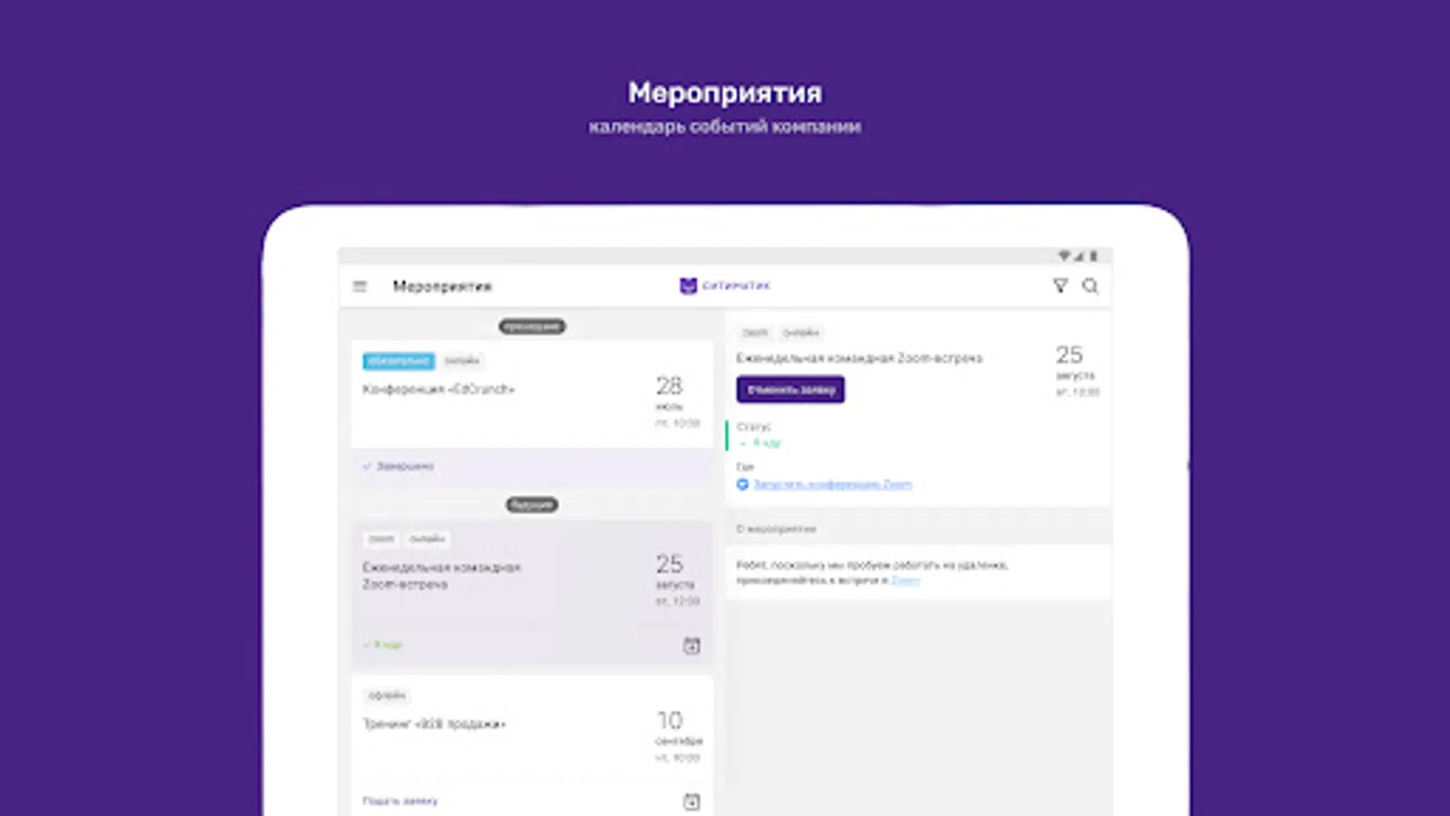 ⁃ Calendar of corporate events with the possibility to apply for participation