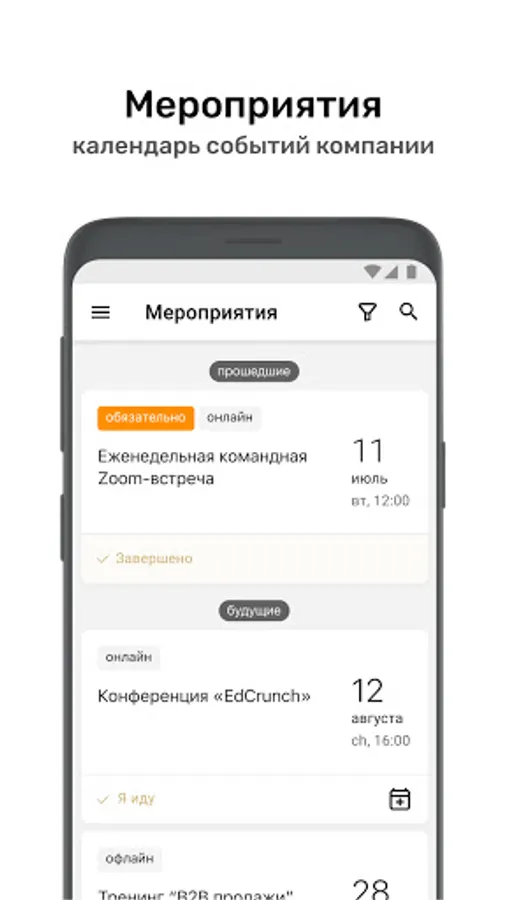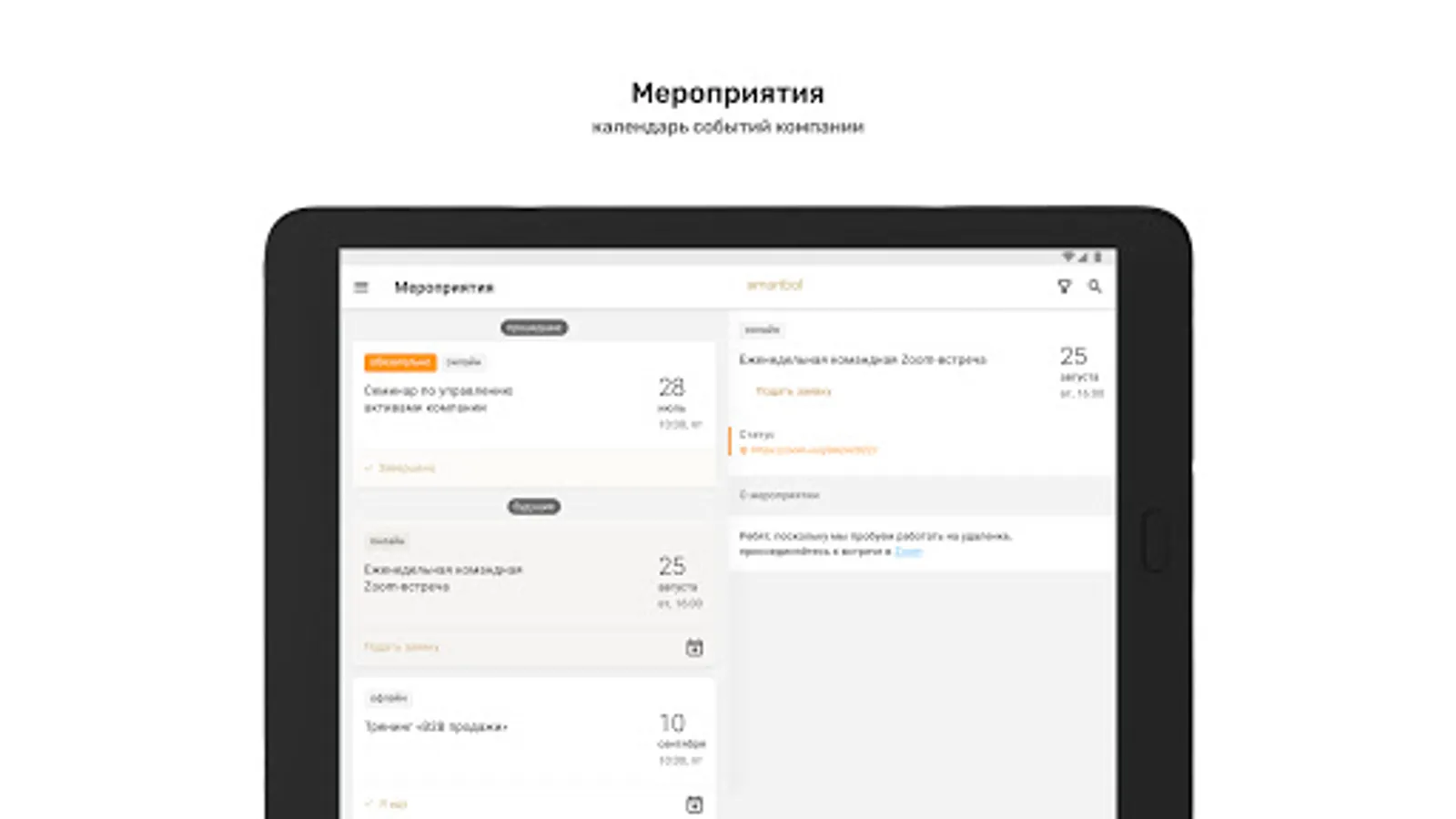⁃ Calendar of corporate events with the ability to apply for participation