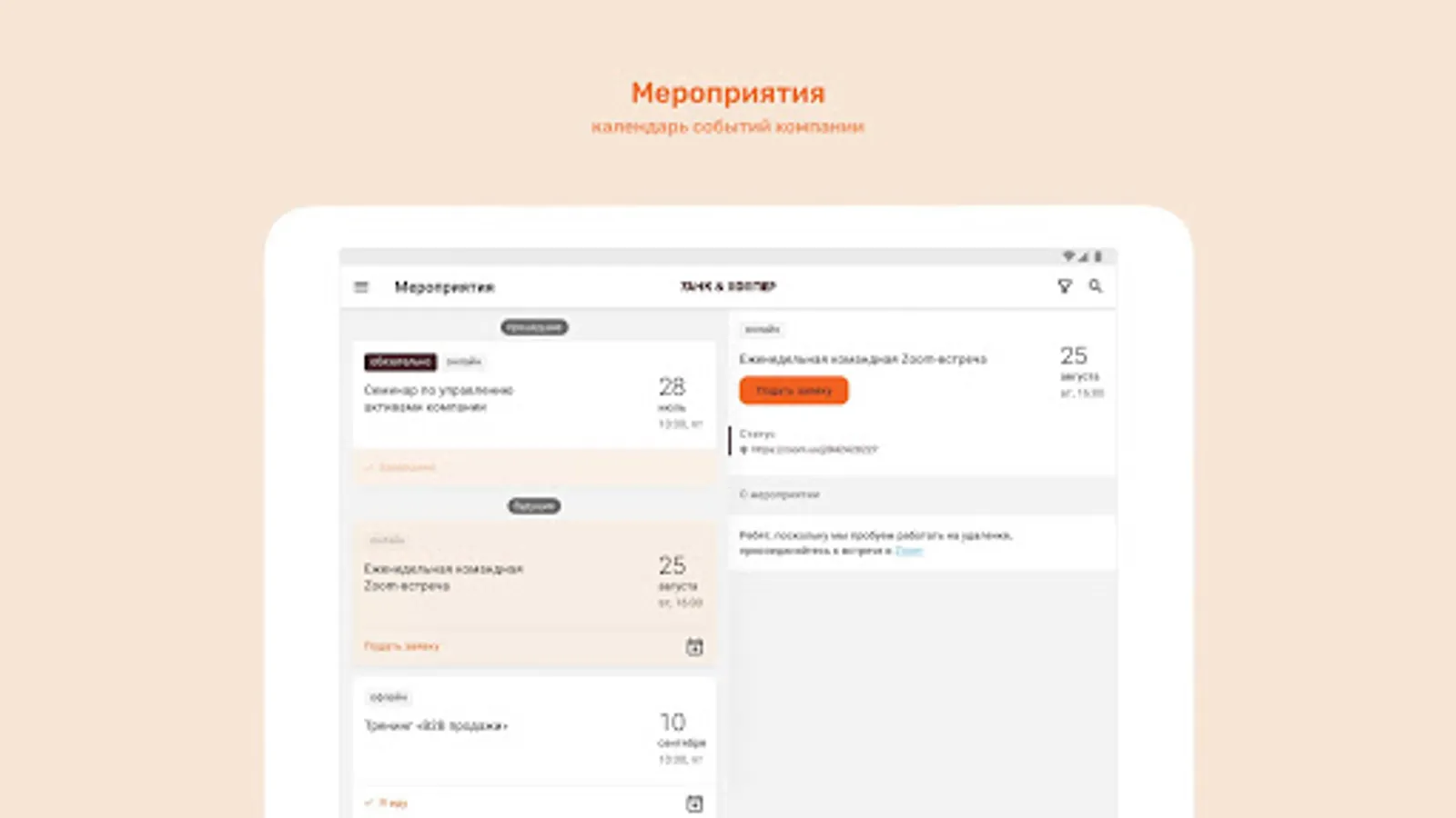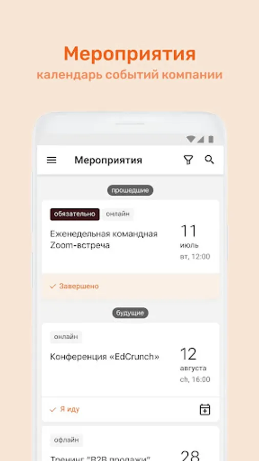 ⁃ Calendar of corporate events with the ability to apply for participation