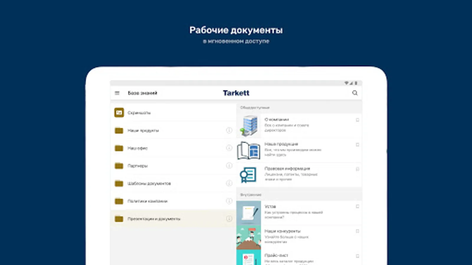 The TarkettAcademy mobile application will allow you to always have at hand the necessary materials on Tarkett products, service standards and other professional topics in one place: