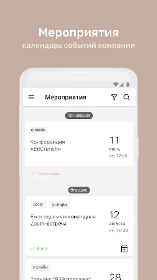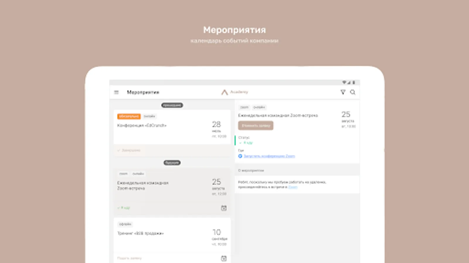 ⁃ Calendar of corporate events with the possibility to apply for participation