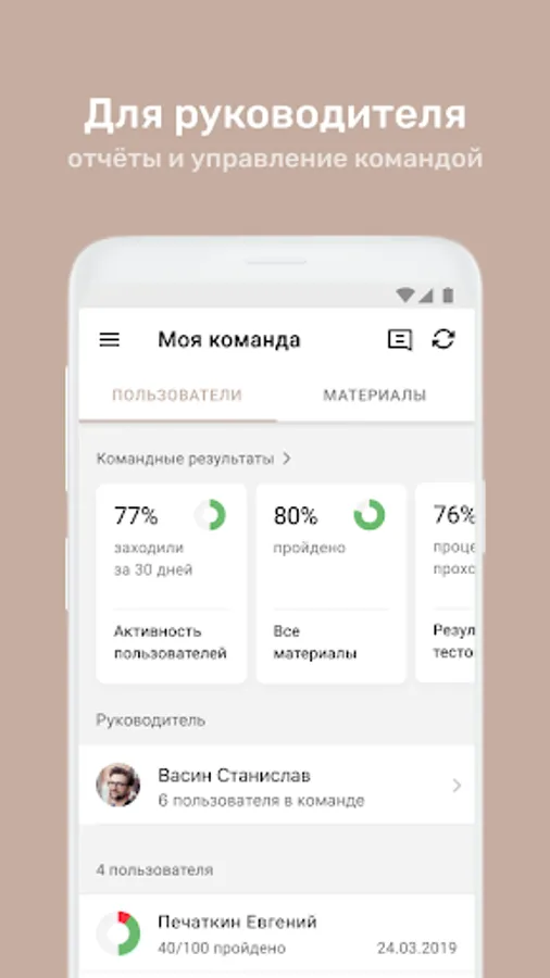 ⁃ Are you a leader? Post and discuss team news directly from the app, give out rewards and check learning progress