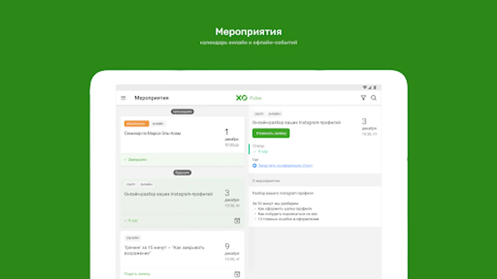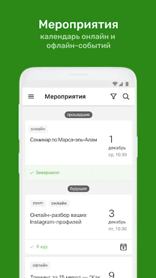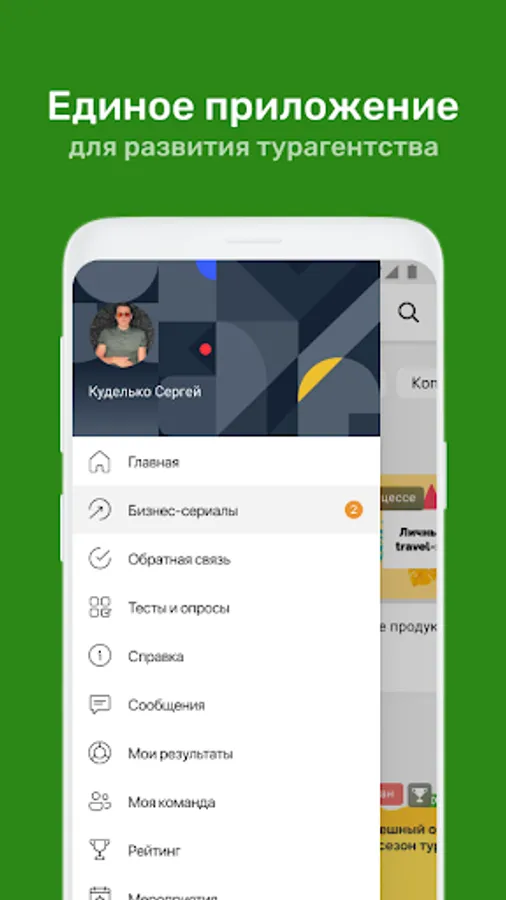 All network events are always at hand. Meetings with tour operators, colleagues and partners. Take part in online meetings right from the app.