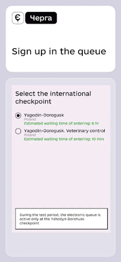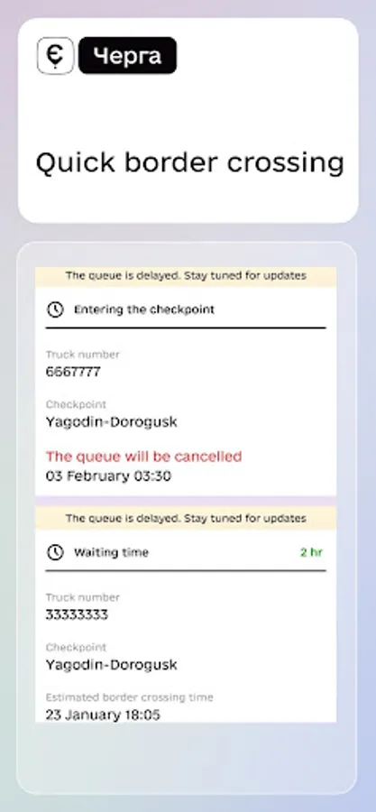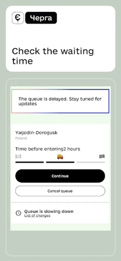 Electronic queue for passage without waiting at international checkpoints. Valid for international cargo carriers.