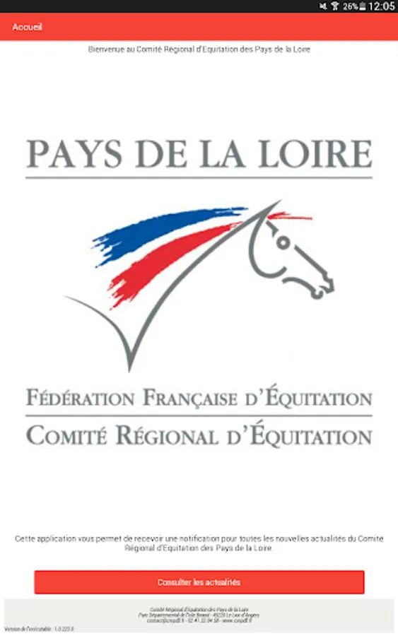 Official application of the Pays de la Loire Regional Riding Committee. Find all the news from CRE Pays de la Loire in your mobile application. You will be notified by notification as soon as a new news item is published.