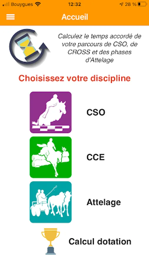 Practical tool application for course managers and riders in Show Jumping (Show Jumping), Eventing Riding (CCE) and Driving. This application allows you to calculate the times allowed for your course and your phases. In CCE and Driving you can view the minutes and the routes of the CROSS and the Marathon.