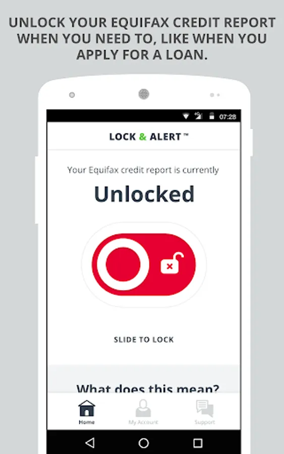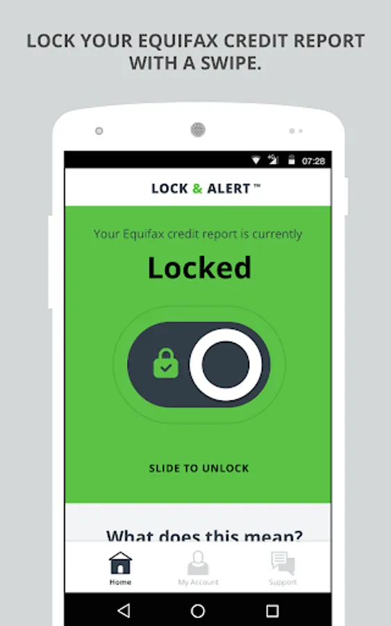 Lock & Alert puts you in charge of who can access your Equifax credit report, with certain exceptions.¹ Lock or unlock your Equifax credit report with just a simple click or swipe, and we’ll alert you each time your Equifax credit report is locked or unlocked.