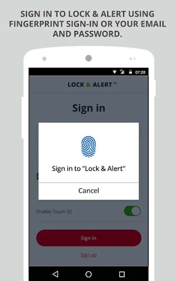 • Sign in to the Lock & Alert app using biometrics, or enter your user name and password.