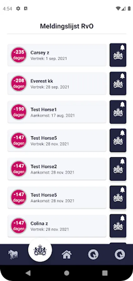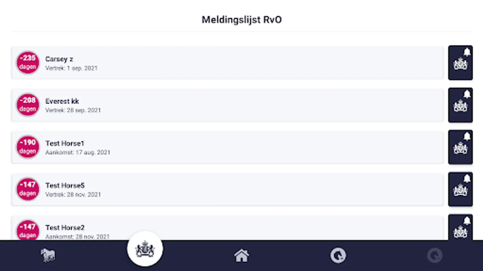 * See in the handy notification list how many days you have left to report the arrival or departure of a horse to RvO