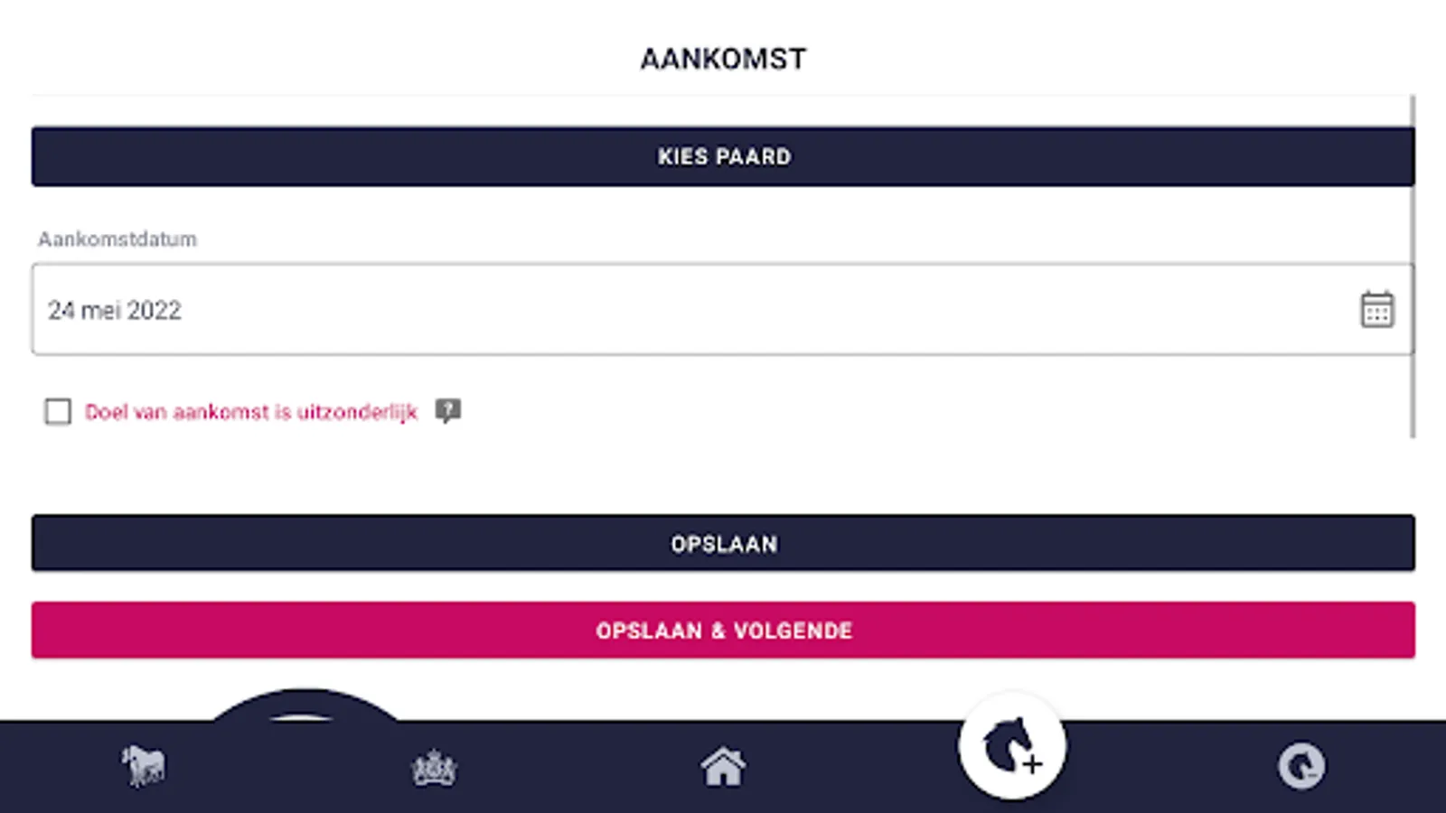 * When a horse arrives, you only need to enter a name and chip number or UELN, the rest of the data (if known) will be collected from RvO. If the horse is not yet known to RvO, additional information will be requested so that an import report can be made.