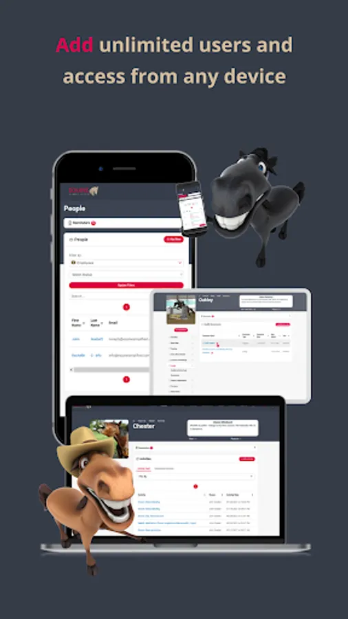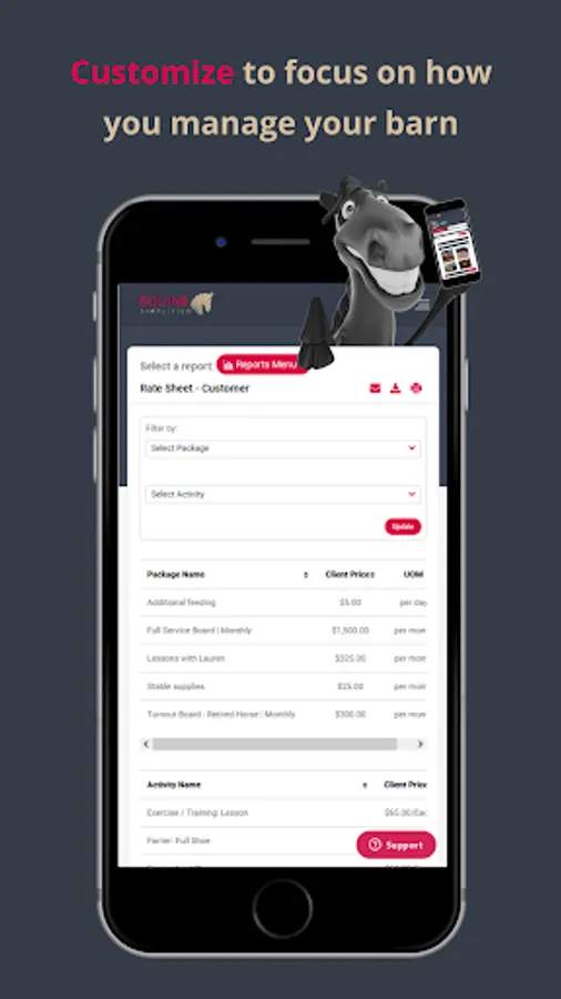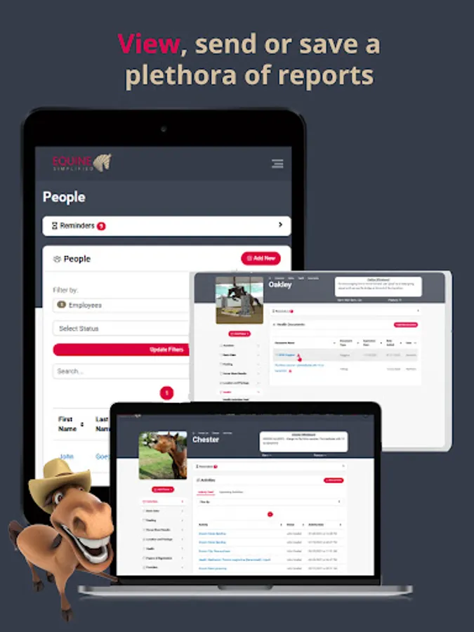 • Run a multitude of reports: horses, stable information, health, horse show and finance