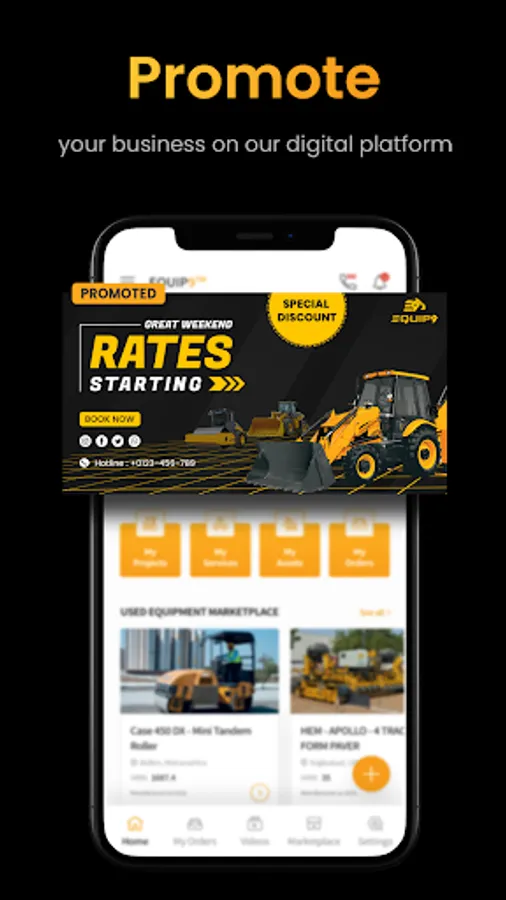 With EQUIP9™️ digital app customers can manage the certified workforce, track equipment, buy/ rent/ sell their assets anywhere, anytime across the globe. Customers can get all analytics related to their equipment such as fuel, mileage, run time, idle time, Geo-fencing from EQUIP9™️ digital app.