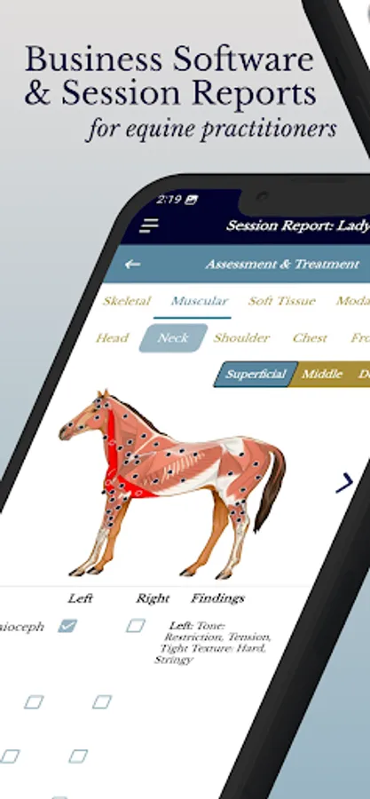 • Clinical, in-depth session reports for bodyworkers with 3 templates to choose from - skeletal, muscular and soft tissue