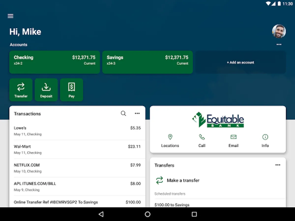 Equitable E-Banking is your personal financial advocate that gives you the ability to aggregate all of your financial accounts, including accounts from other banks and credit unions, into a single view. It’s fast, secure and makes life easier by empowering you with the tools you need to manage your finances.
