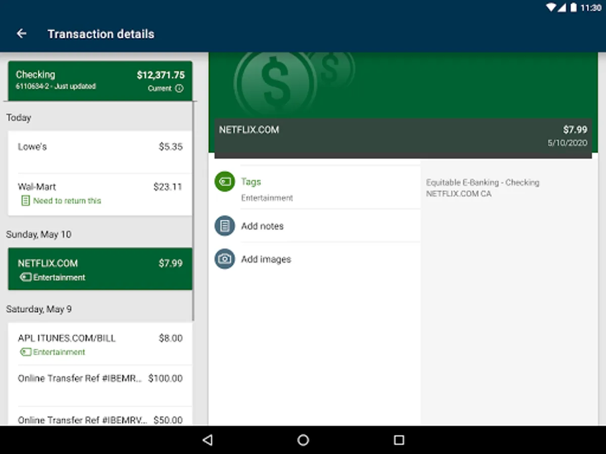 -Keep your transactions organized by allowing you to add tags, notes and photos of receipts and checks.