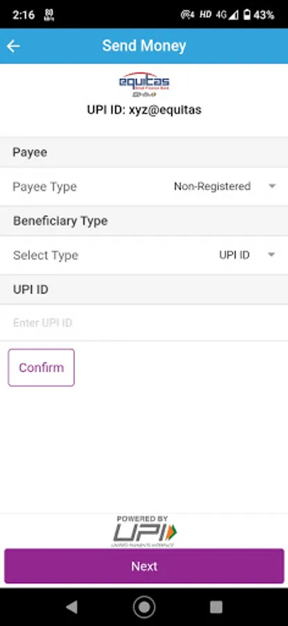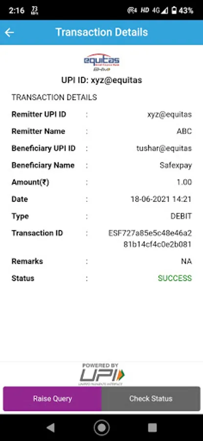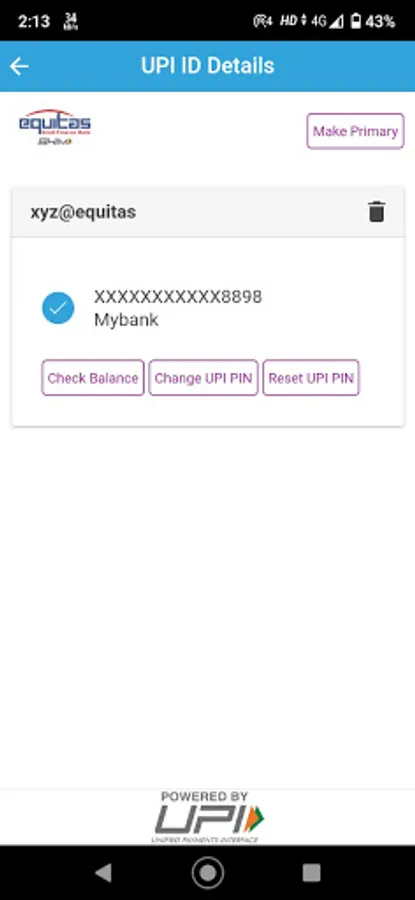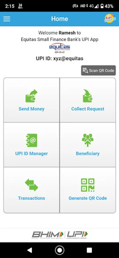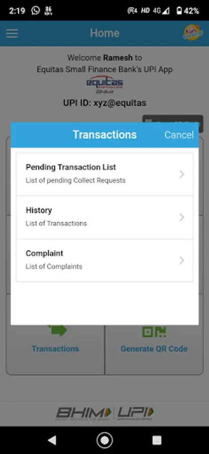BHIM Equitas UPI App allows users from Any Bank to perform