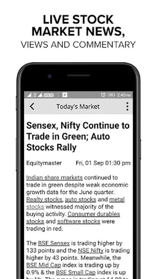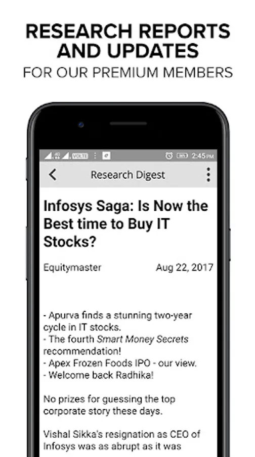 Our App also offers live stock quotes and market commentary. If you are a Equitymaster premium member, you can also access our premium research reports.