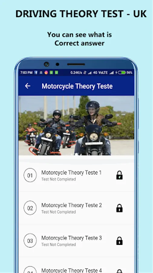 ✓ MOTORCYCLE THEORY TEST : This driving theory test app also provides best practice test for motorcyclists and moped riders.