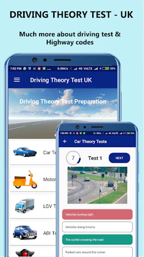 ✓ CAR THEORY TEST : This driving theory test app provides best practice theory test for car drivers so you can see how the DVSA/DVLA Theory test works for car drivers.