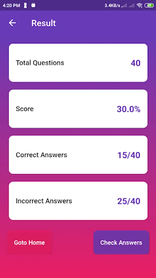 - End of the driving theory test display result of all questions. So user can verify his true answer and wronf answer.