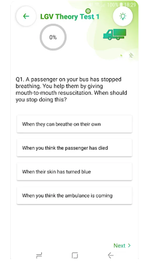✓ LGV THEORY TEST : This LGV theory test is provided to familiarise you with the format of the official test.