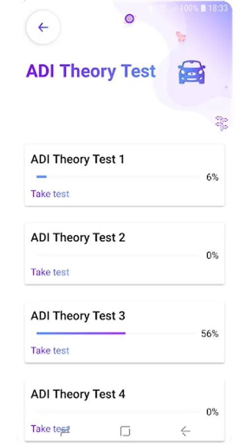 ✦ Display progress of every Driving Theory test.
