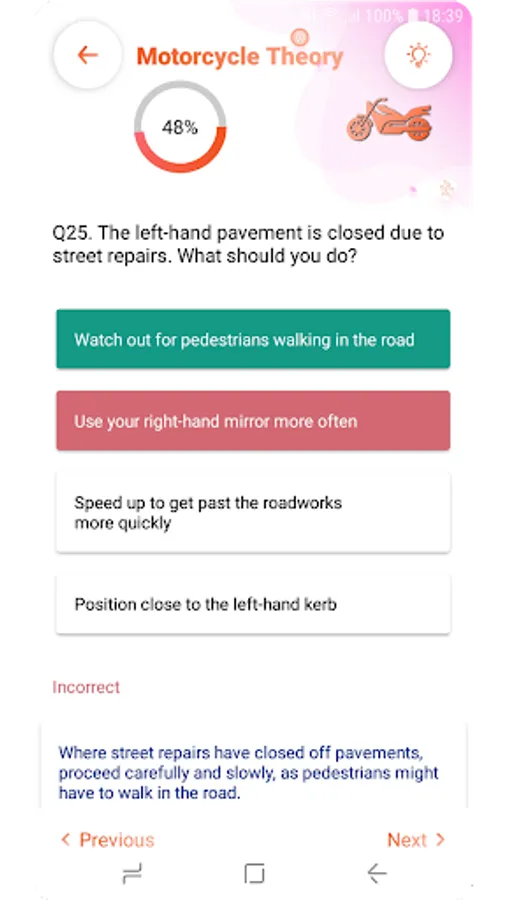 ✓ MOTORCYCLE THEORY TEST : This driving theory test app also provide best practice test for motorcyclists and moped riders.