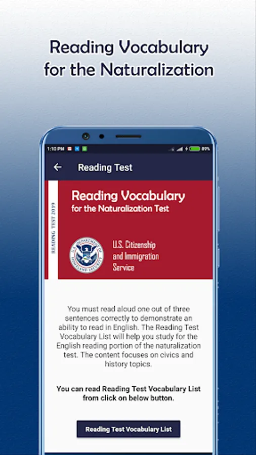 ✓ Reading Test : Our Reading Test Vocabulary List will help you study for the English reading portion of the naturalization test. The content focuses on civics and history topics