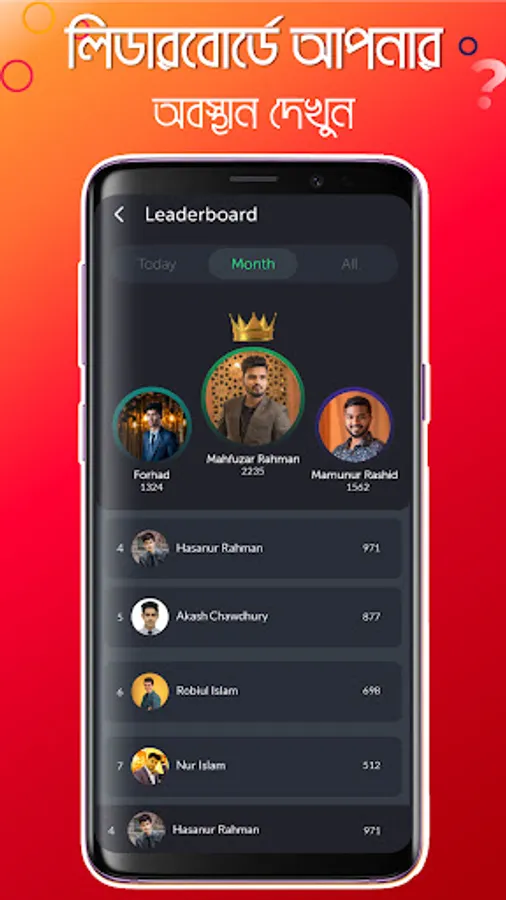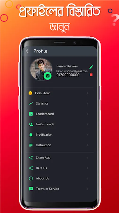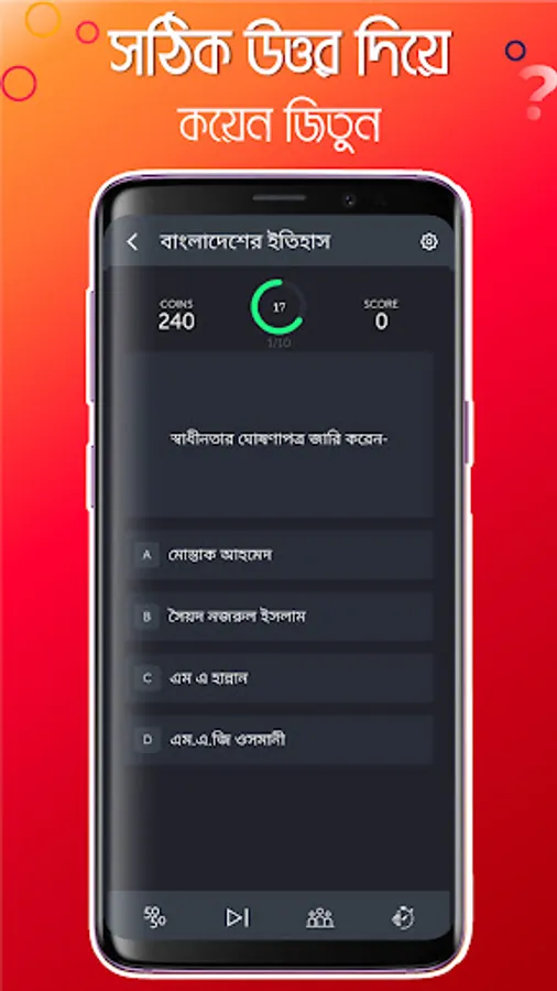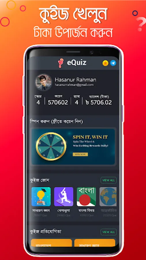 বাংলা ভাষায় বিভিন্ন বিষয়ের উপর কুইজ খেলে নিজের জ্ঞান আরও সমৃদ্ধ করুন। পাশাপাশি অর্থ উপার্জনের সুযোগ থাকছে এই অ্যাপের মাধ্যমে। প্রতিদিন নতুন নতুন কুইজ প্রতিযোগিতায় অংশগ্রহণ করে জিতে নিতে পারেন লক্ষ লক্ষ টাকার পুরস্কার।