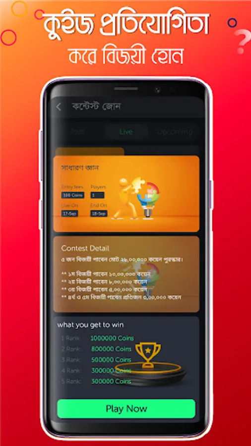 ** কুইজ প্রতিযোগিতায় অংশ নিয়ে বিজয়ী হলেই পাবেন লক্ষ লক্ষ কয়েন / টাকা।